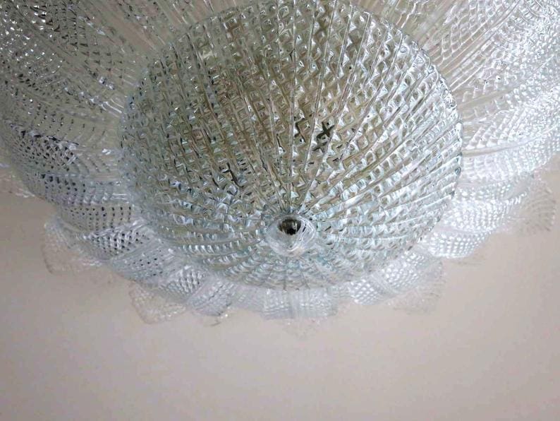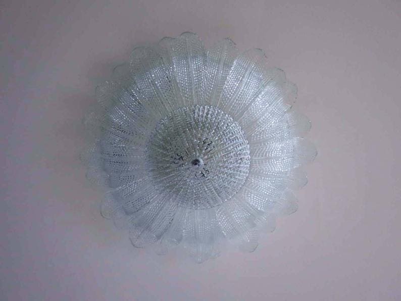 Dimension glas: 24 bladformede glas, 40 cm i højde, 14 cm i bredde – glas som bund: 40 cm i diameter.