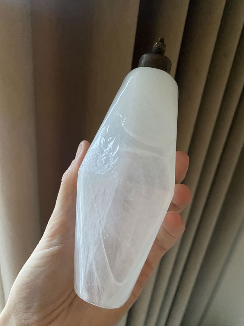 Se de sidste billeder af den klare glaslysekrone i Bettinas indretning for bedre at forstå størrelsen.