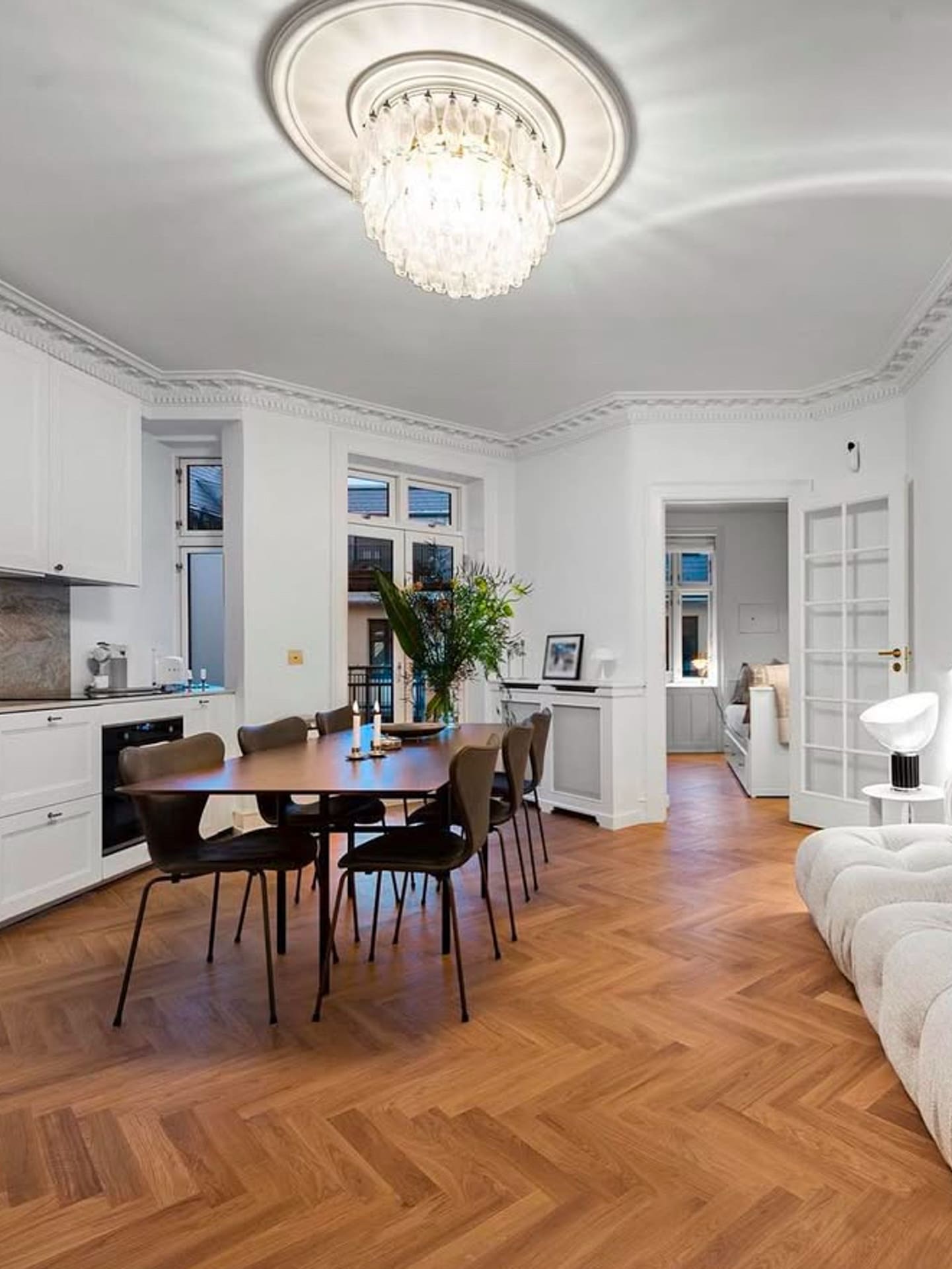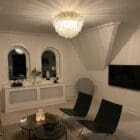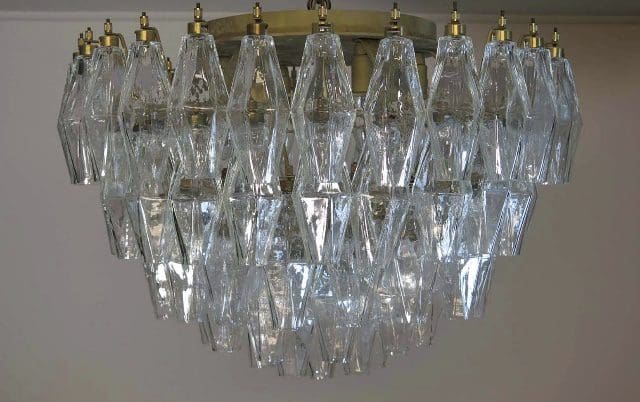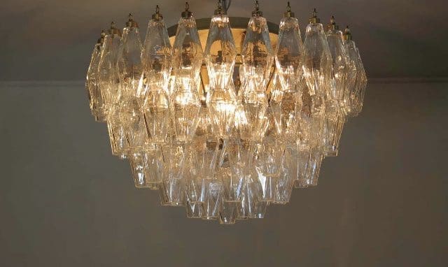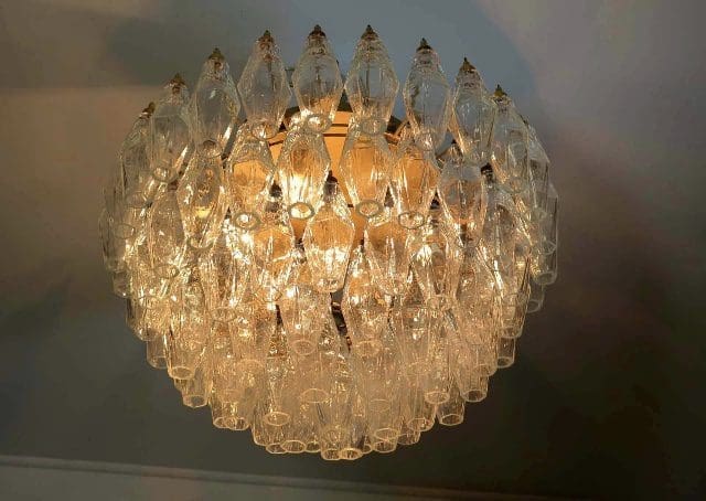 Forny dit hjem med et strejf af italiensk elegance med vores loftslampe i Murano-stil. Denne lampe er et sandt mesterværk af glashåndværk og består af 84 smukke klare Murano Poliedri glas der tilføjer en levende og hyggelig atmosfære til ethvert rum.