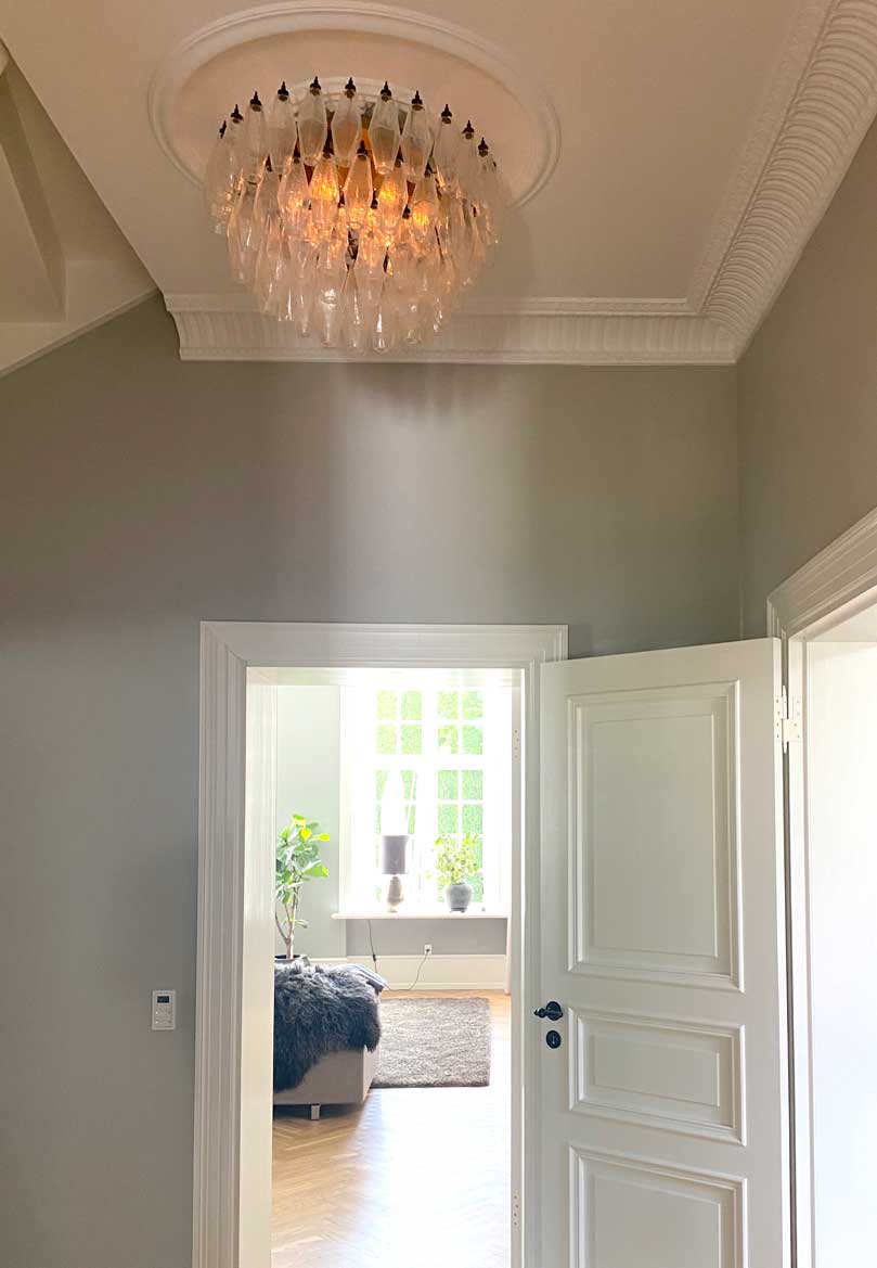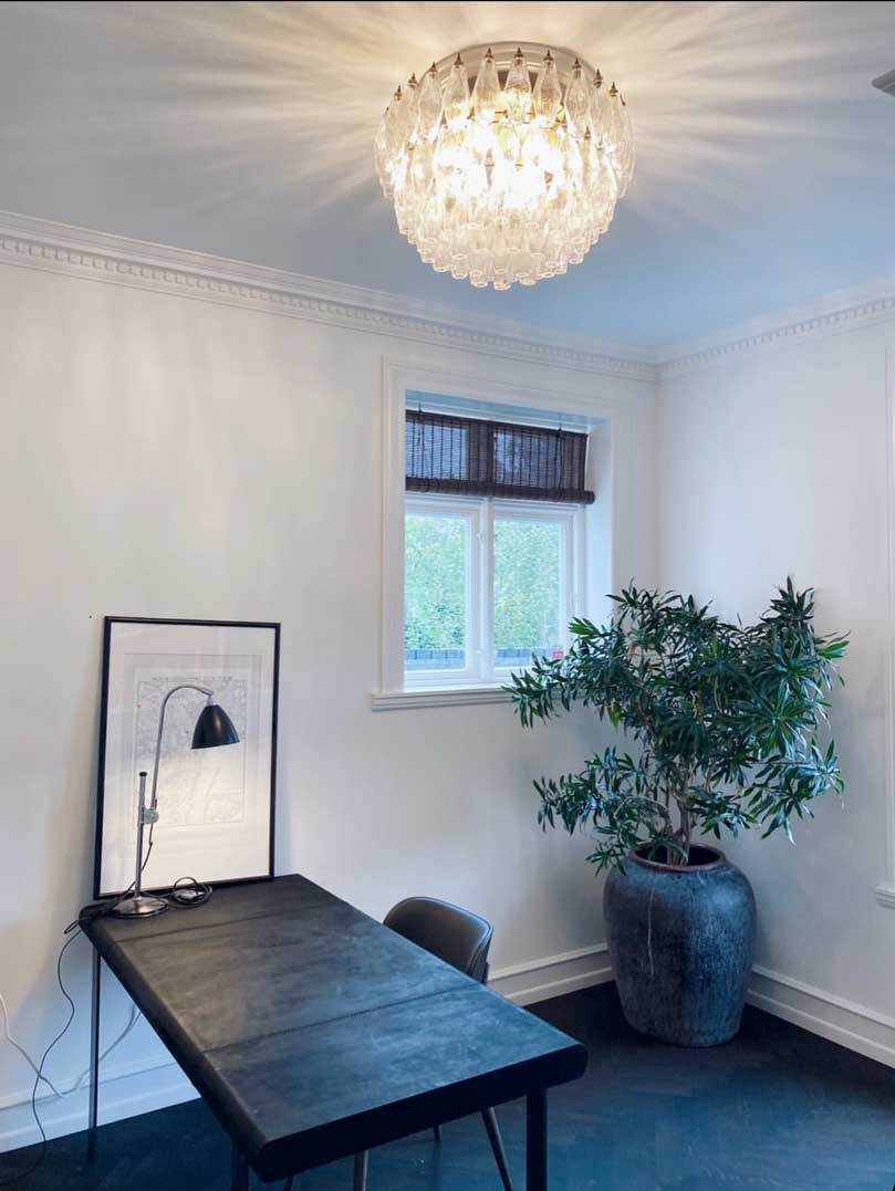 Den elegante og strømlinede design gør den ideel til montering direkte på loftet eller rosetten, hvilket giver en harmonisk integration med din indretning. Oplev den subtile skønhed og raffinerede håndværk af ægte italiensk glaskunst med denne imponerende loftslampe.