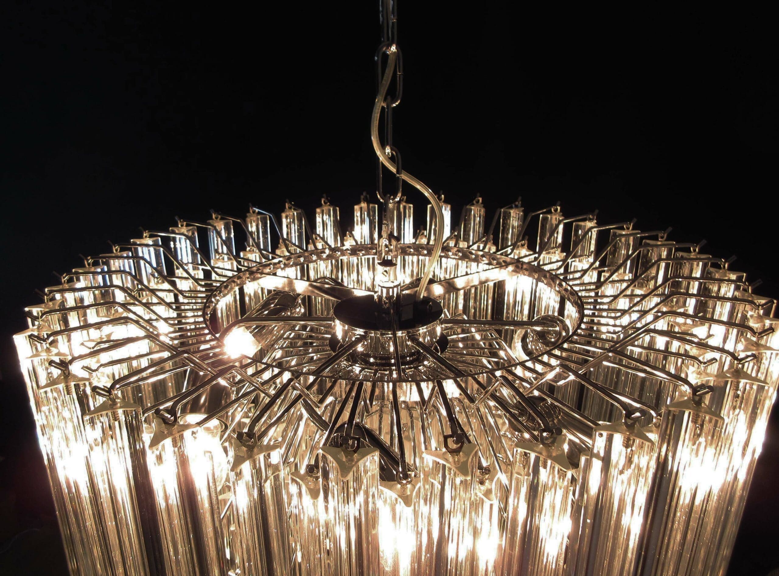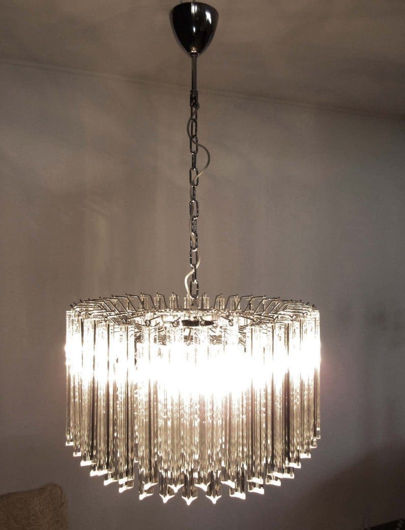 Dimensioner: 105 cm i højden med kæde (kan forkortes samt forlænges) 36 cm i højden uden kæde, 60 cm i diameteren.